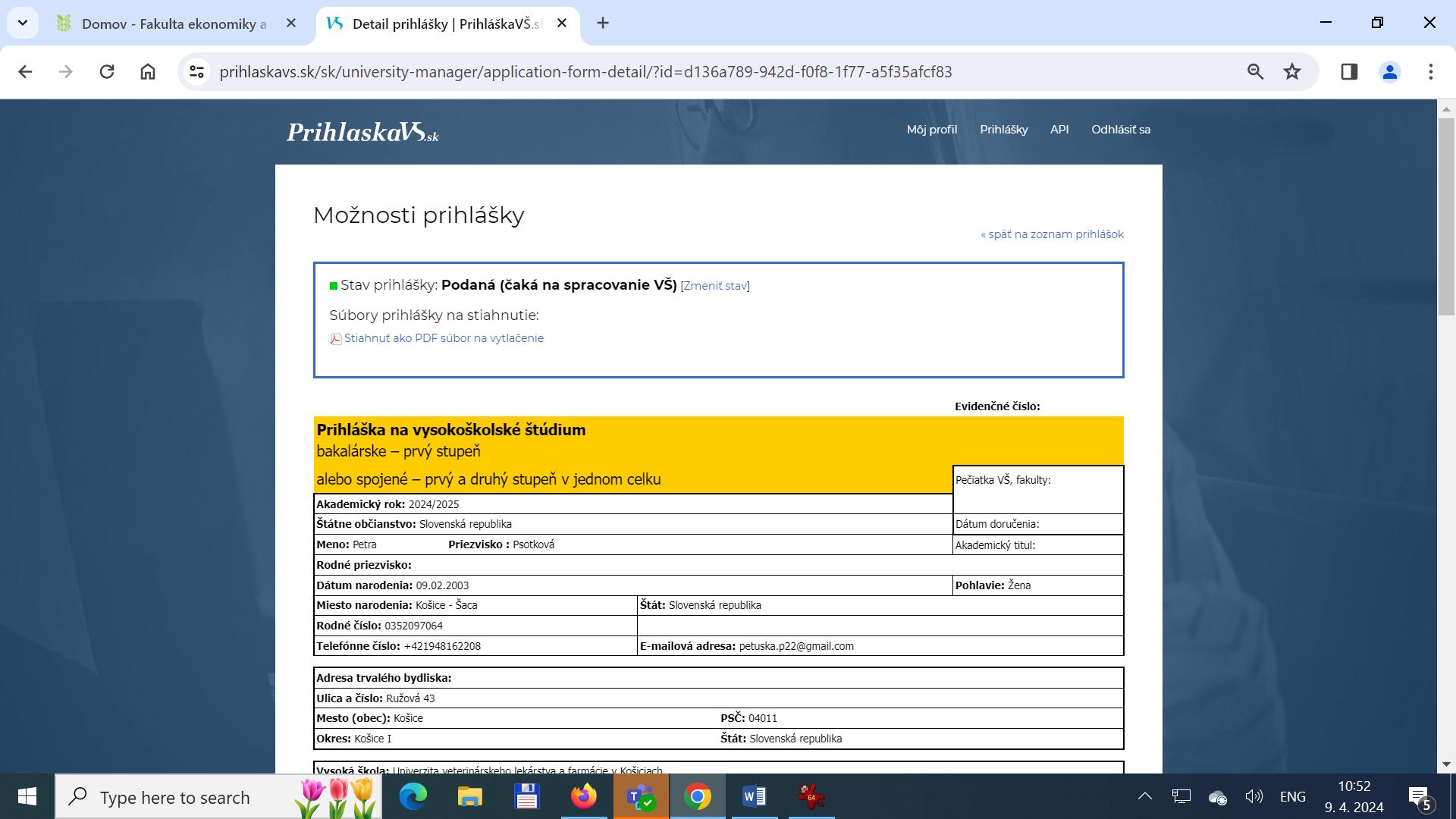 | aplikovaná ekonómia a analýza dát ( denné 3 roky ) |